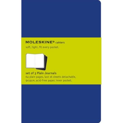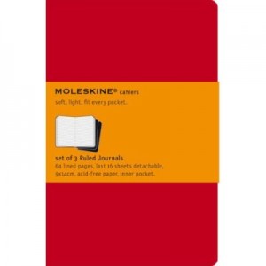 Amazon now has the new red and blue-covered Moleskine Cahiers, in stock and available. They come small and large, and with plain, ruled and squared pages. A nice alternative to the usual black and tan!