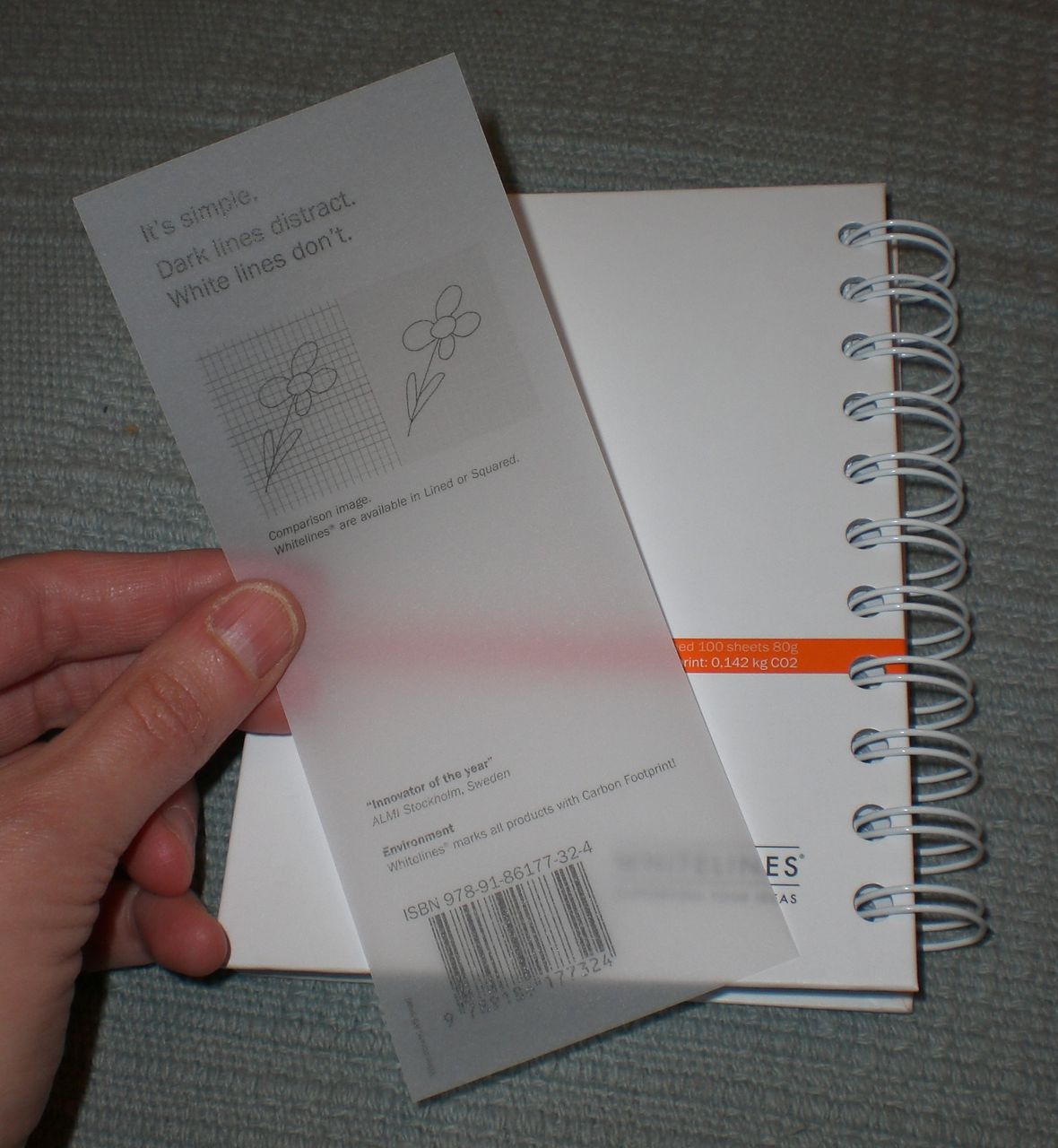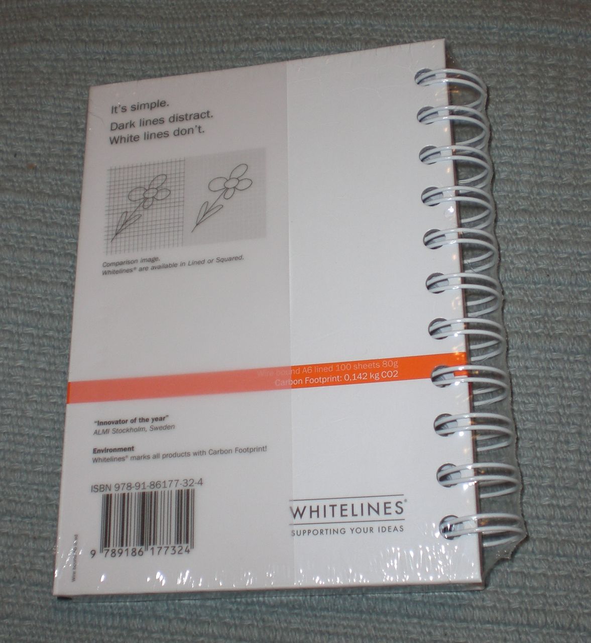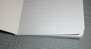 The only thing I didn’t like about the Whitelines notebook—the only thing—is the binding is too good. The spine just will not break, the thing will not lay flat. This means that about 3/4″ of the left page and 1/2″ of the right page is difficult, inconvenient, or impossible to use.