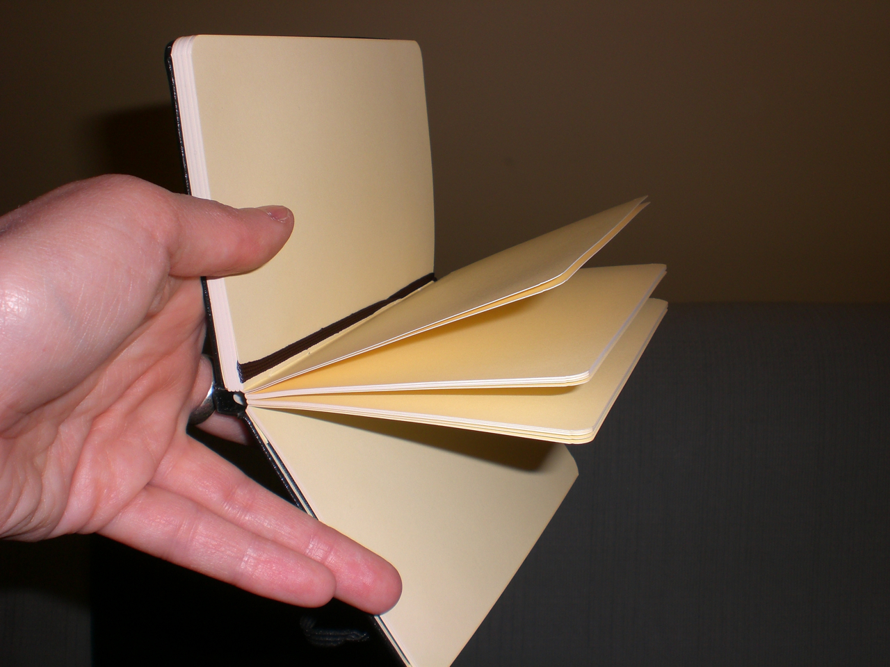 Also, on closer comparison, the color of the paper is less yellowish than one of my older pocket Moleskine sketchbooks.