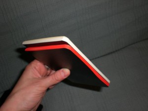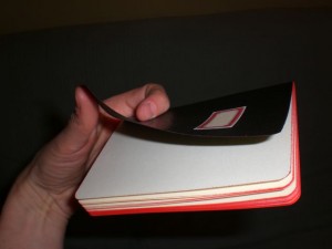 The covers are a little lighter than I would prefer– they’re very flexible and I’m afraid they wouldn’t stand up to a lot of wear and tear. The pages are held together with staples.