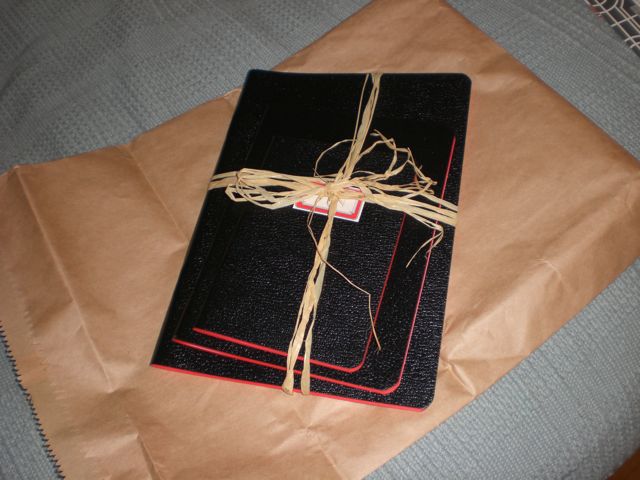 The notebooks arrive attractively packaged in brown paper, with Vickery’s business cards. Inside, the set of 3 different sizes is held together with rough brown twine.