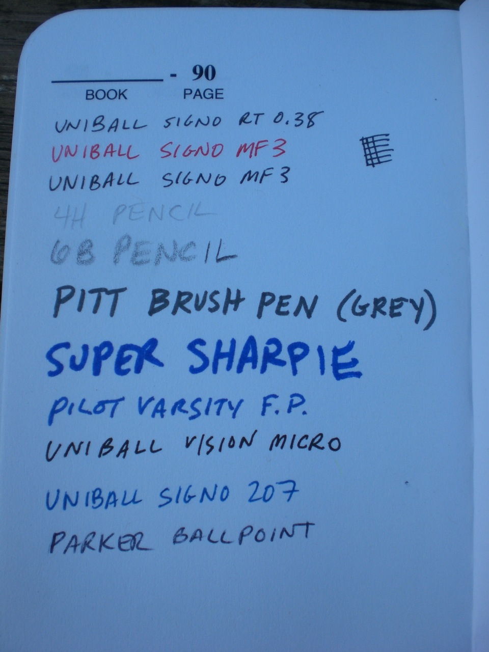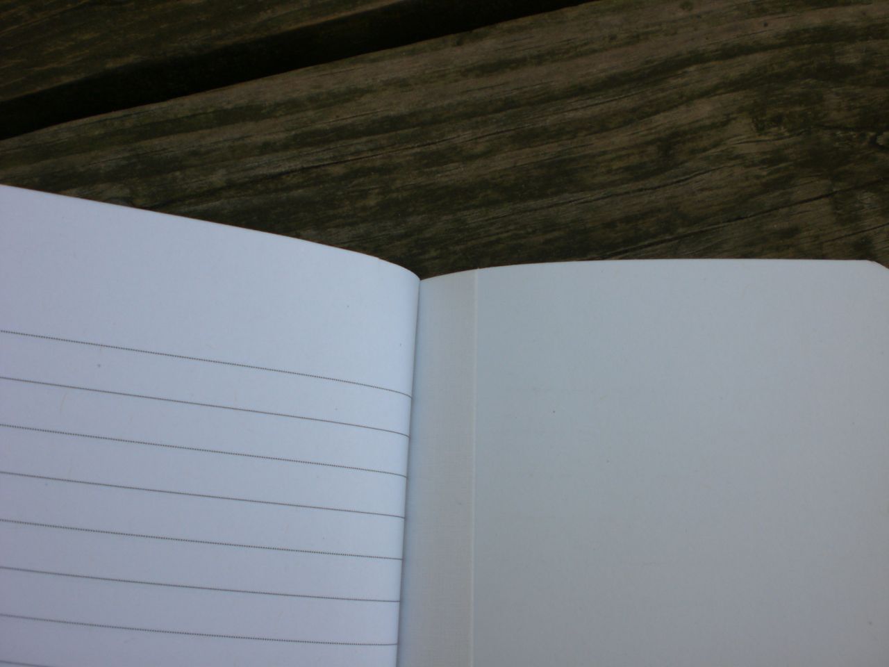 As for the texture, it doesn’t give the ecstatic writing experience of the smooth, fine paper used in a Moleskine or Rhodia or Clairefontaine notebook– it’s more comparable to the standard white paper you’d find in any spiral notebook at Staples, but perhaps a bit thicker. Some pens feathered a bit, but it performed fairly well in terms of show-through.