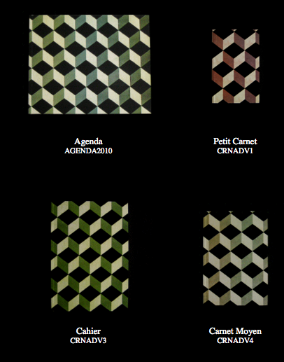 You might recognize these as one of the “7 Not-Boring Notebooks” I linked to a while back. They were featured at Jayson Home & Garden as “Bleeker Notebooks”, but they’re also sold by, and perhaps made by a French company called Astier de Villate. It’s probably easier and cheaper to buy them from Jayson, but you must check out the Astier de Villate website anyway, just for the experience! It’s very cool.