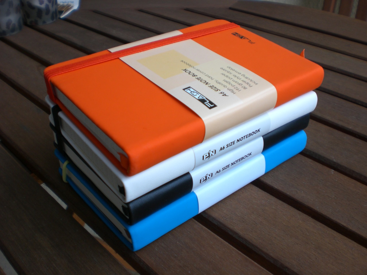 Usually I prefer black notebooks or at least dark …. but these are much nicer in the bright colours.