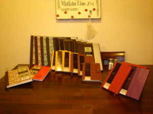 Some are like faux suede and most have the Tri-Fold panels to open it up. Most of the smaller have bookmarks as you can see from the photo.