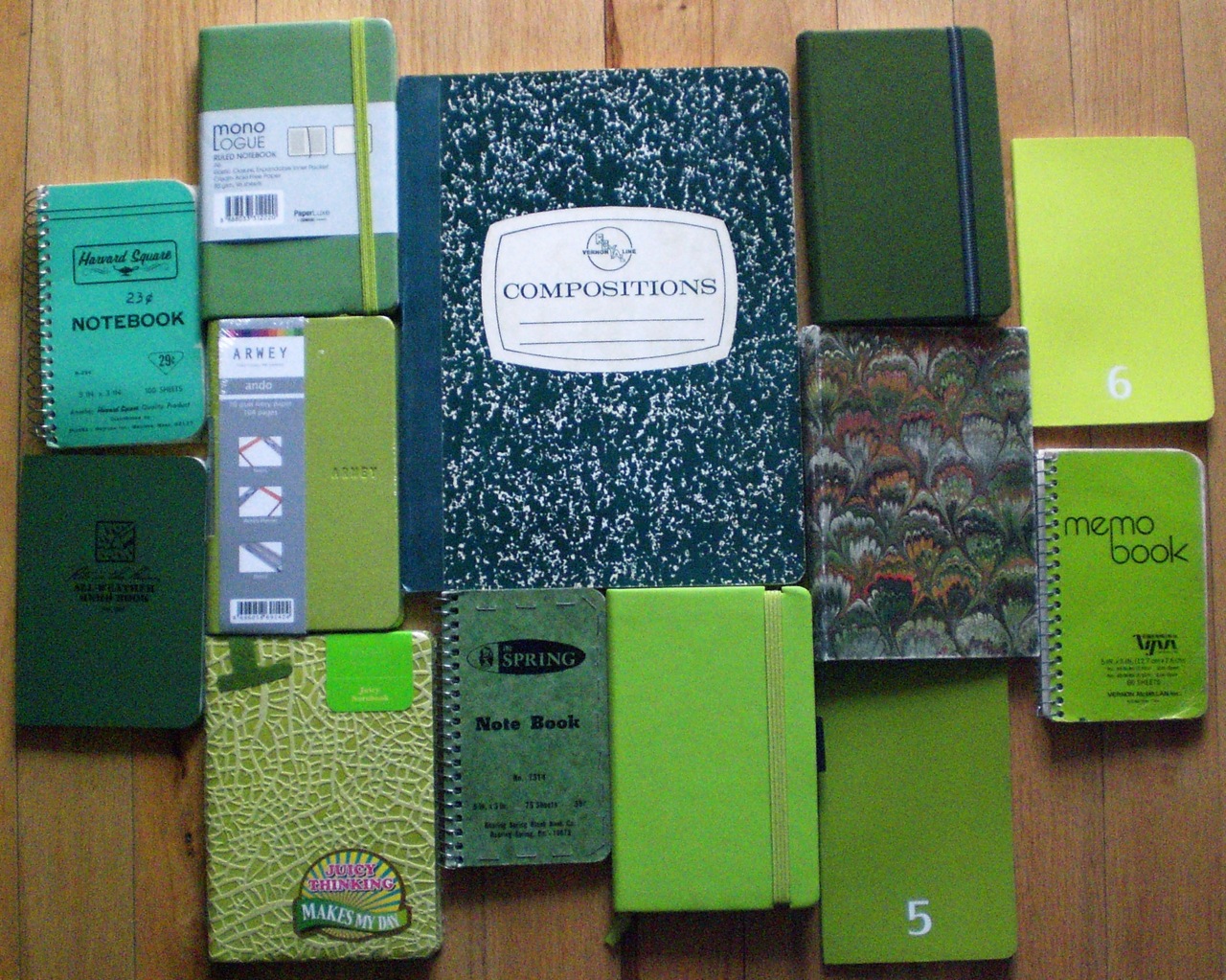 Hi Alex, I haven’t yet managed to photograph my whole collection. It’s big enough to be hard to display properly! But it is on my to-do list to at least attempt it! I’ve been wanting to replace the header photo on the blog with something that captures a broader range of my collection rather than the mostly childhood notebooks seen there now. And yeah, green is a good notebook color. Why don’t more people use it?
