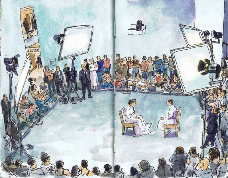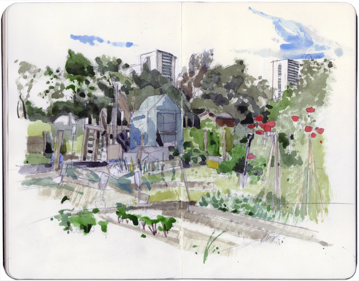 I’m a longtime fan of the Urban Sketchers website. Small notebooks aren’t necessarily the only way to do urban sketches, but they’re probably the most practical and frequent tool, so the site offers lots of notebook eye-candy, as well as some great art. Here are a few recent favorites: