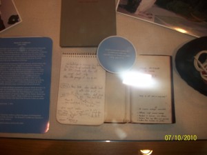 These are in display cases on the first floor of the William Oxley Thompson Library at Ohio State University. These are notebooks included in this display.