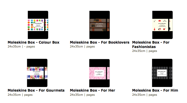 Moleskine Asia has some boxed sets for sale– I haven’t seen anything like this in the US except for a special set MoMA did to tie into the Bauhaus exhibit.
