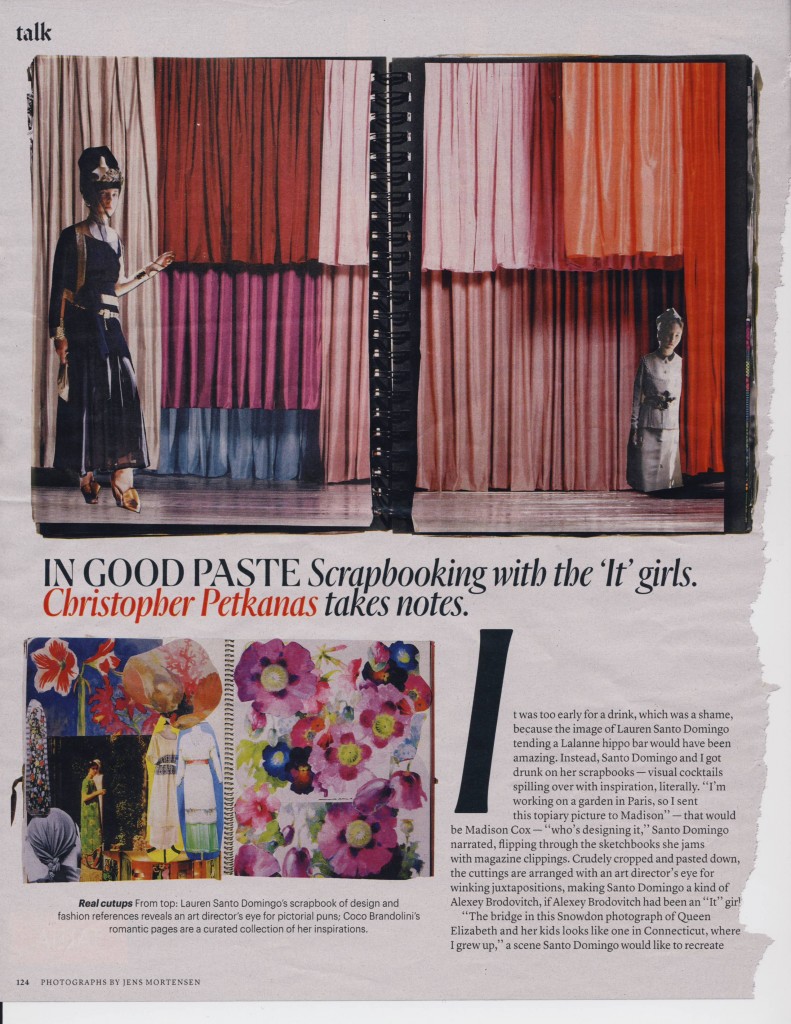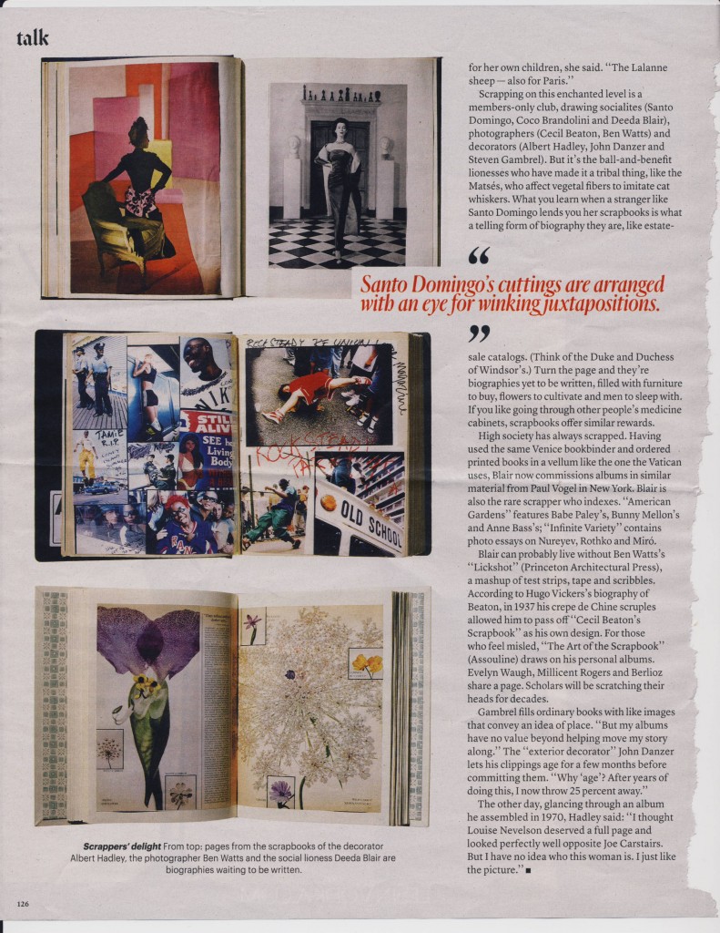 Art, creativity, Other People's NotebooksStylish Scrapbooks January 18, 2011 Nifty Notebook 1 Comment Here’s a bit of inspiration, an article torn from the NY Times Style Magazine a few weeks ago about scrapbooks kept by designers and socialites. I love the idea of just collecting inspiring images and filling page after page with them…