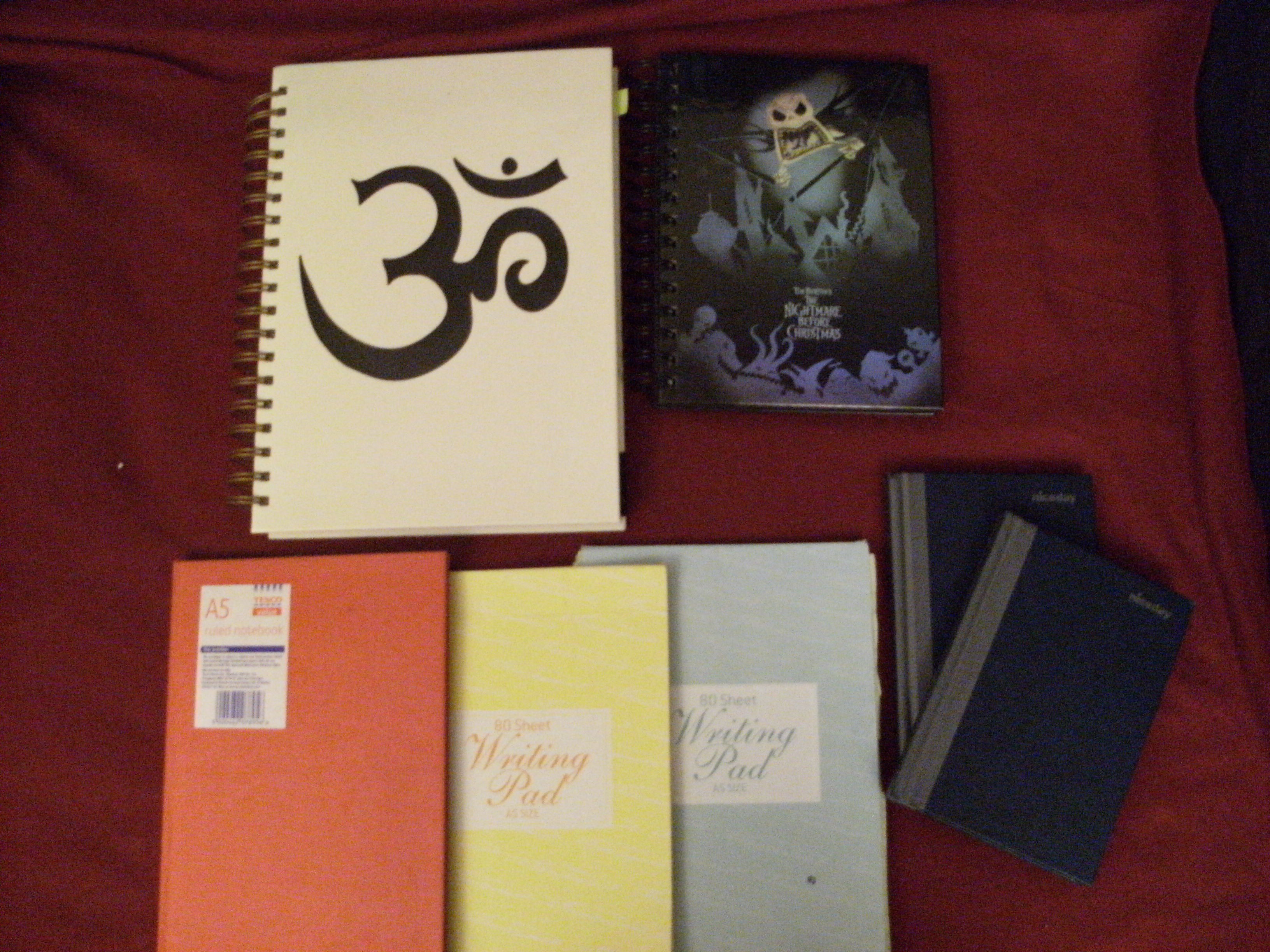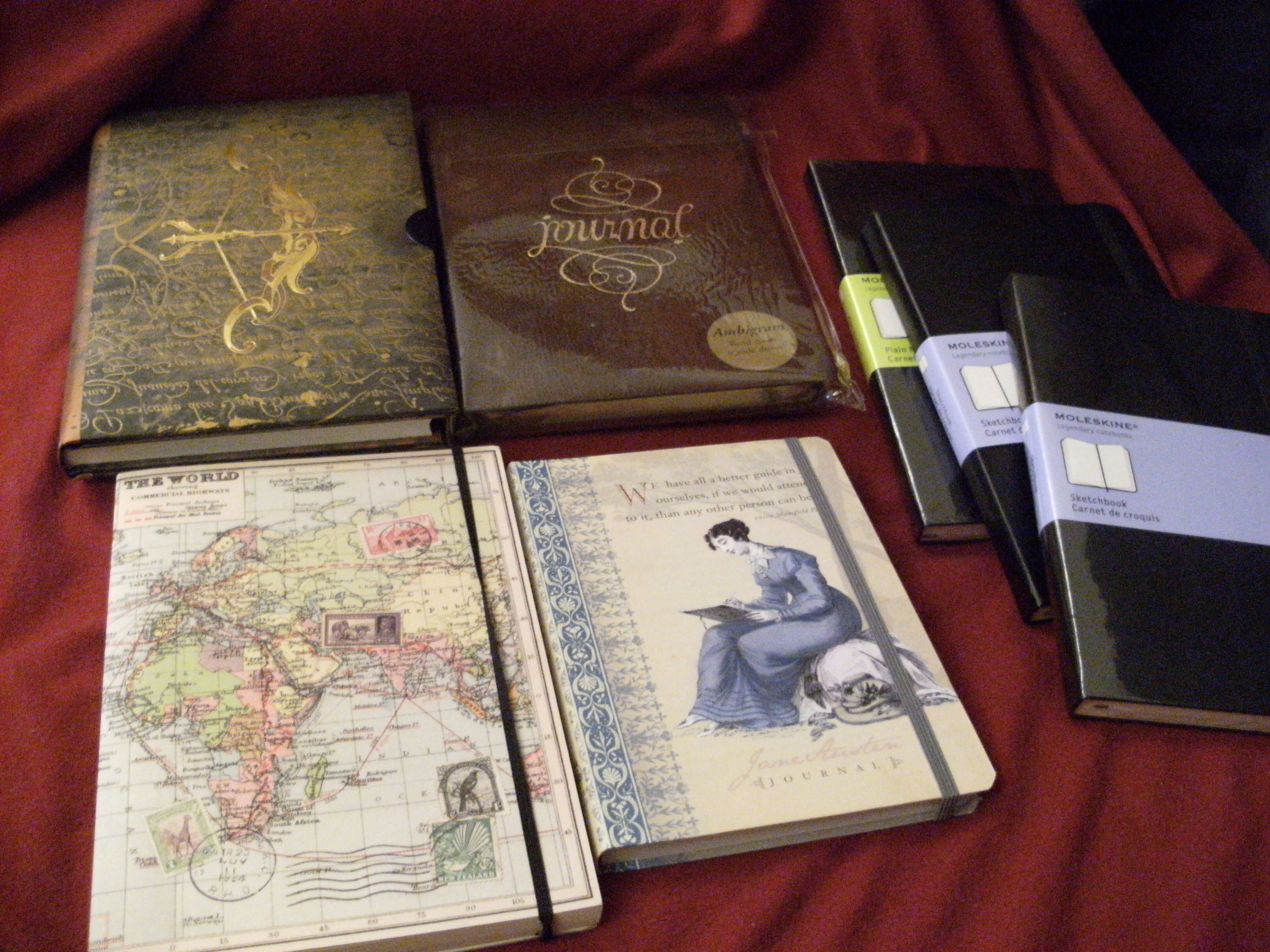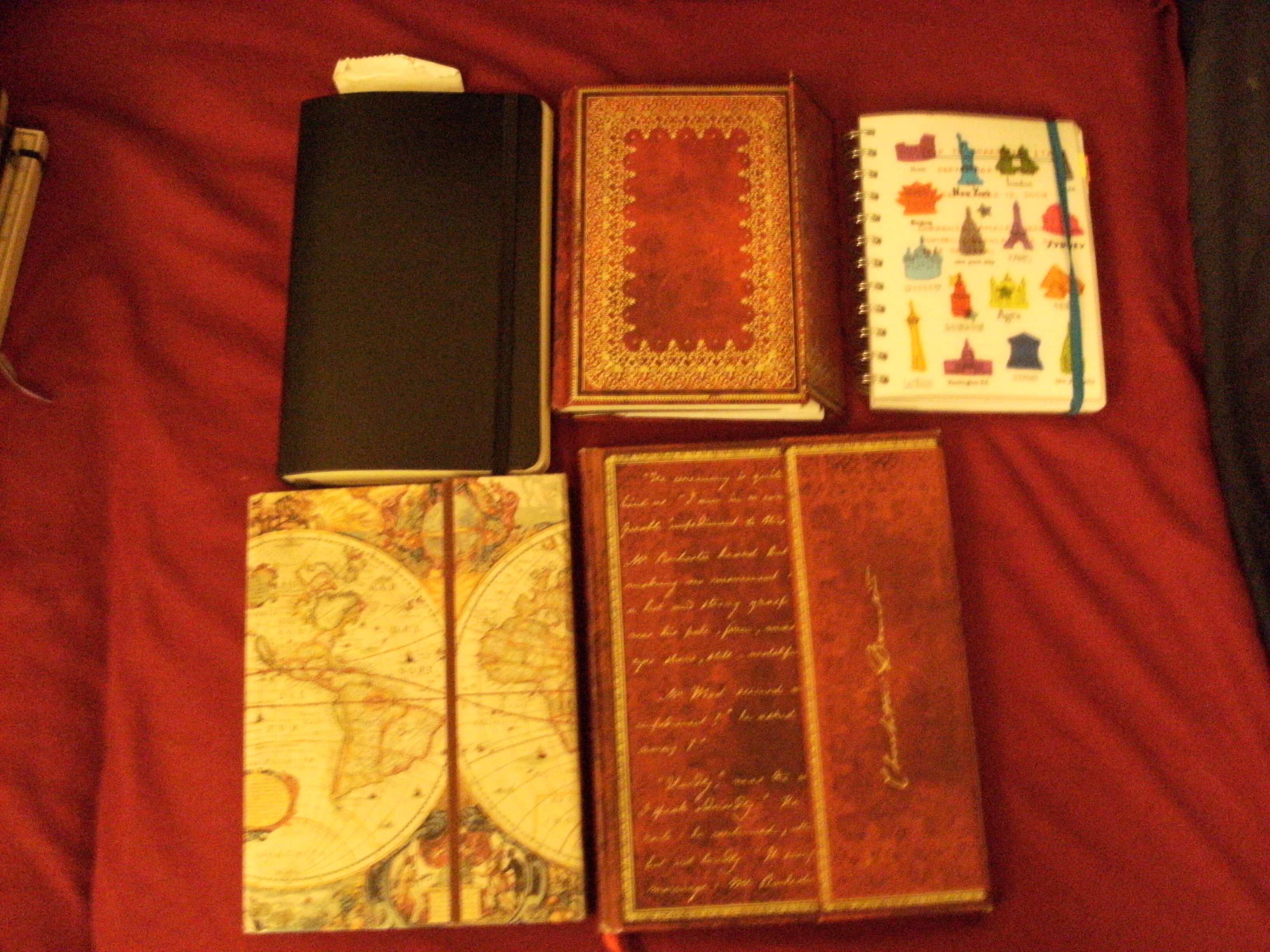 I’ve been journaling for about 8-9 years, but have kept notebooks for various other things as well. This is a collection of journals and notebooks, at least the ones I could find at the moment. I am sure there are others hidden away somewhere.ÂPicture 1 – Personal JournalsPicture 2 – Travel JournalsPicture 3 – Brand New Journals Waiting To Be UsedPicture 4 – 7 – Simply More Notebooks