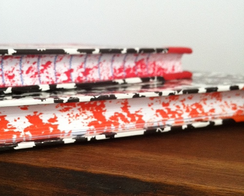 Here’s another brand of cool, retro-looking notebooks. Love those marbled edges! And the labels! And the corners! They’re handmade in Portugal and come with various color spines.