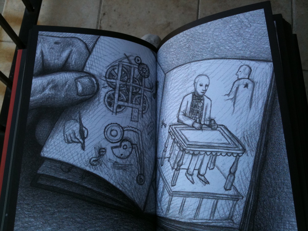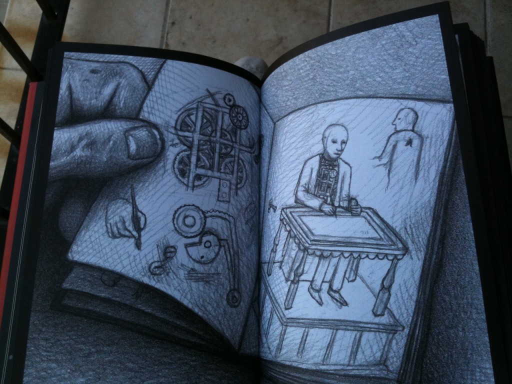 The Invention of Hugo Cabret is a wonderful children’s book by Brian Selznick, told in words and gorgeous pictures. Part of the story revolves around a notebook full of sketches of a mechanical man: