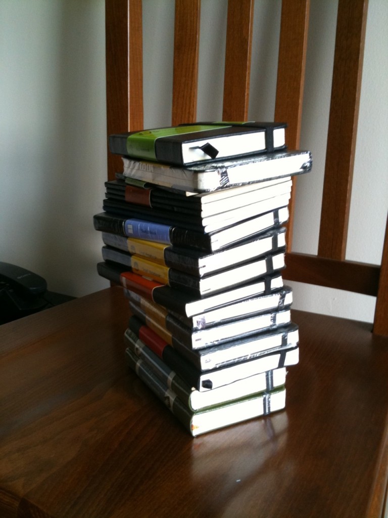Here’s my stack of notebooks that are queued up for future daily use: some Moleskines, Piccadillies and HandBook Artist Journals, plus a couple other brands. Not to be confused with the many more notebooks I have already filled, or the ones that will probably just remain unused. Or ones yet to be reviewed, that I’m not sure will make it to daily use.