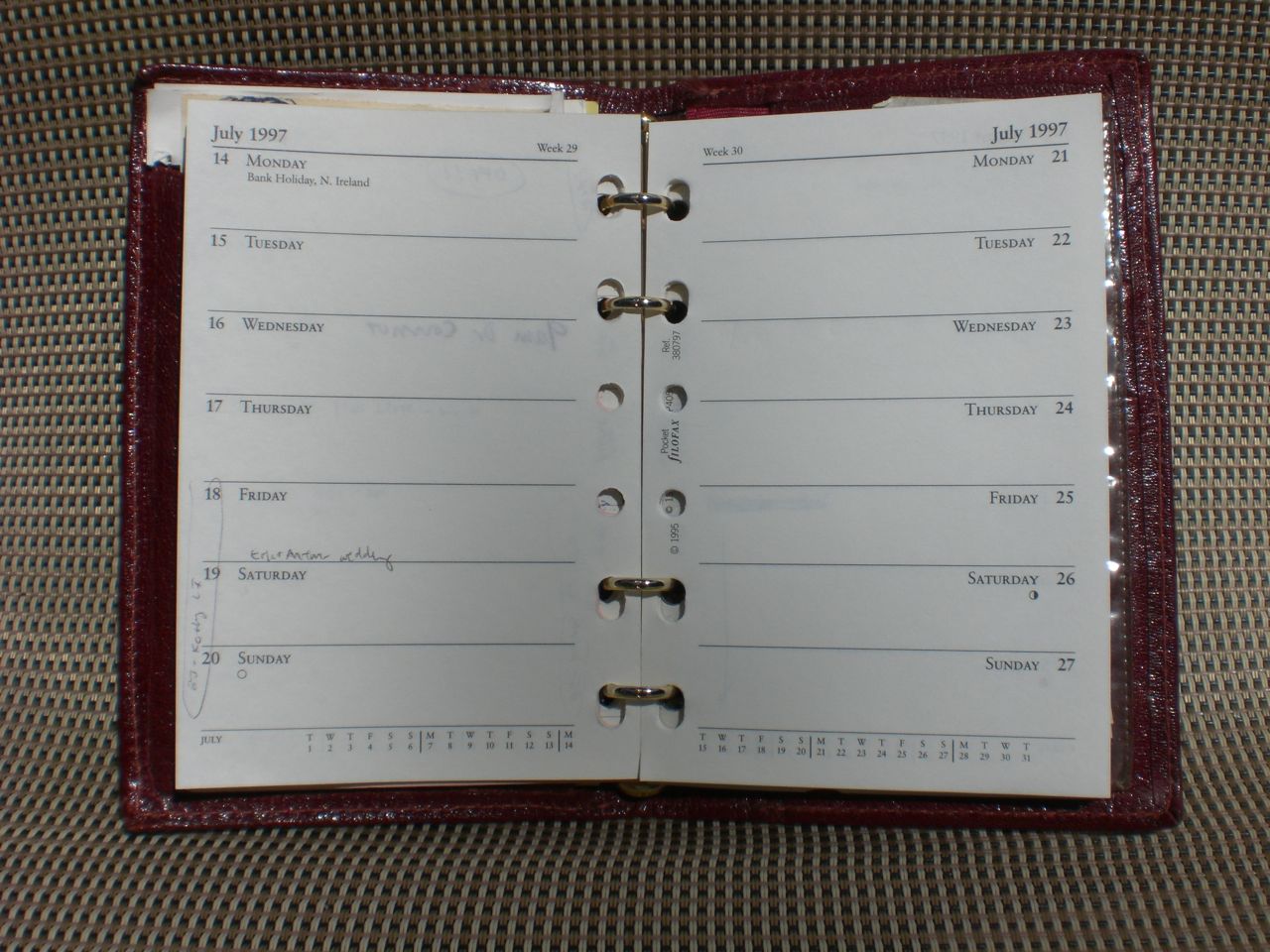 I have to say, I have my difficulties with paper when it comes to keeping a calendar. I have adoringly used many paper agendas over the years, including several years’ worth of Filofax calendars. But the arrival of the Palm Pilot coincided with my professional life revolving more and more around meetings and travel, and I found it much easier to keep track of with a handheld device that could sync with Outlook. Once I switched, I never really looked back. Now, I can easily have 15 or more meetings a week, plus personal appointments, birthdays and reminders. Having something beep on my computer or iPhone is often the only thing that saves me from forgetting to attend meetings, which are now almost always scheduled by electronic invitations. In some ways, I do miss being able to just flip through a date book, but that just wouldn’t be practical for me now. But I do keep a journal and daily log in my paper notebook, and I keep to-do lists both electronically and on paper– the split is more or less business tasks and long-term projects kept electronically, and personal, short-term tasks kept on paper.