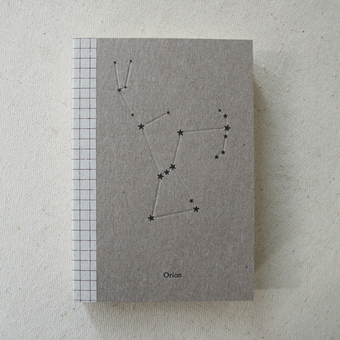On a recent visit to the McNally Jackson bookstore in NYC, I noticed these very cool letterpress notebooks featuring various constellations on the cover: