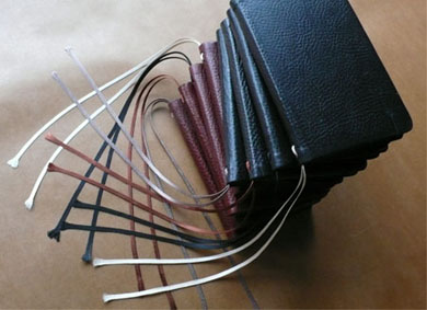 They’re hand-made, with real leather covers. Four sizes are available, including a wonderfully chunky yet compact 600-page pocket size model. Each notebook is made to order, so you can choose the color of the ribbon marker, lined or plain paper, whether or not it has an elastic closure and whether the page edges are dyed. Brown and black leather covers are available, in either cowhide or goatskin. The paper is very thin so ink will show through, but that doesn’t seem to stop fountain pen users from raving about the lack of bleedthrough and feathering, as well as the overall high quality of the craftsmanship. The only complaint I’ve seen is that they are too nice to actually use!