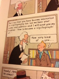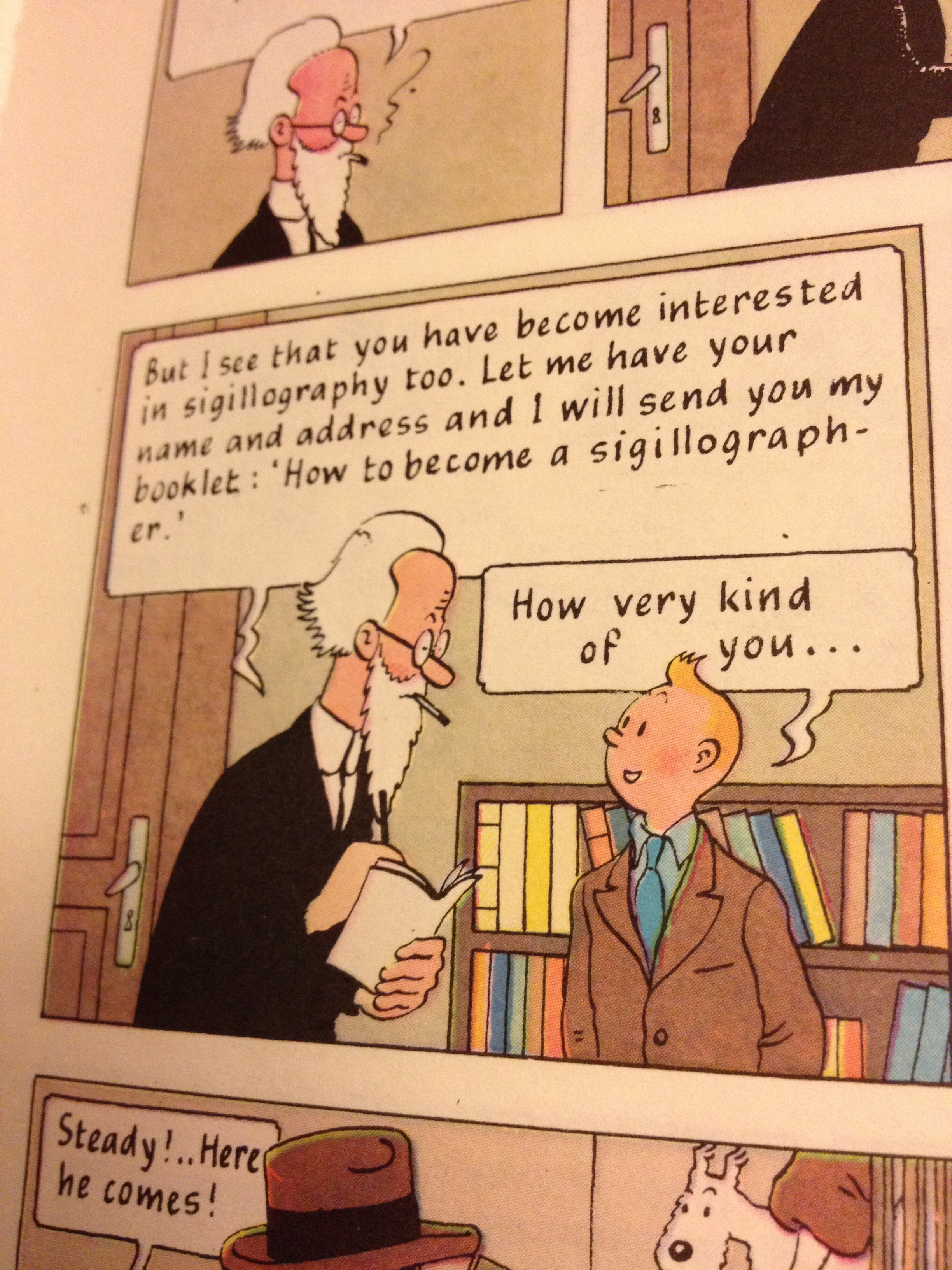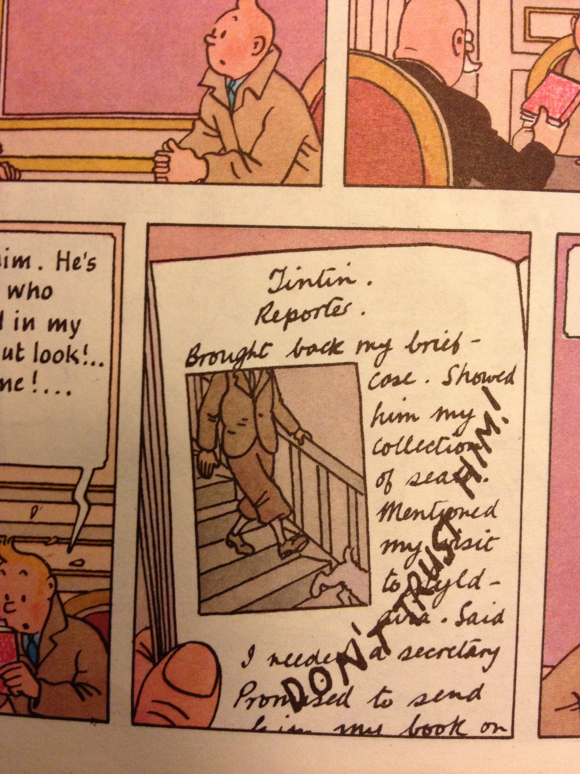 I have been a passionate fan of the Tintin books ever since I was a kid. There are a few moments when notebooks make an appearance, including these: