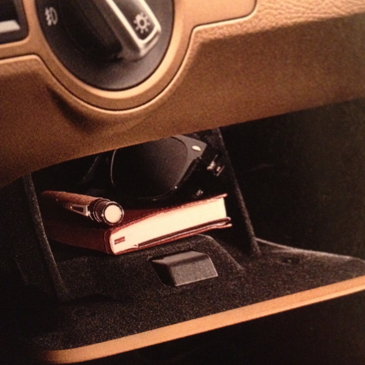 Do you keep a notebook in your car? If so, where do you keep it? If you buy a Volkswagen CC, you can have a special place for it in the small driver’s-side glove compartment, as shown in their brochure: