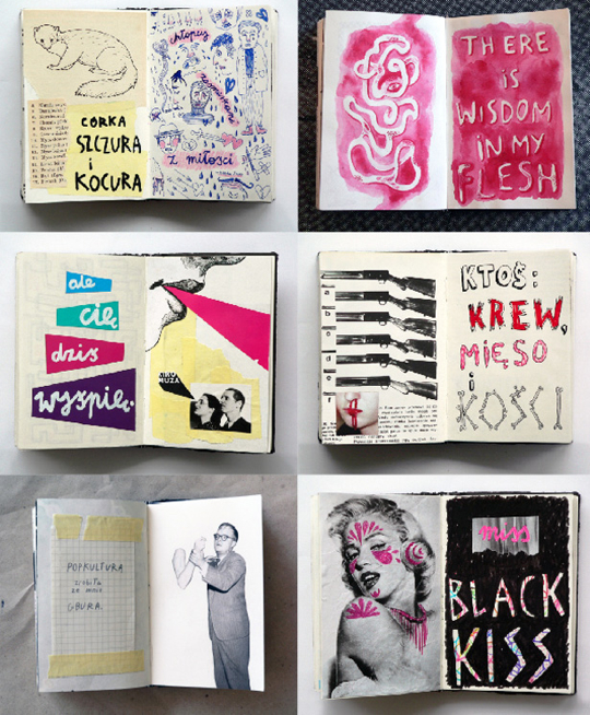 Rookie has a great post about ways to get started with keeping a journal, including visual journaling, writing down overheard conversations, logging daily activities, and more. The author shares some nice photos of her own journals, including these: