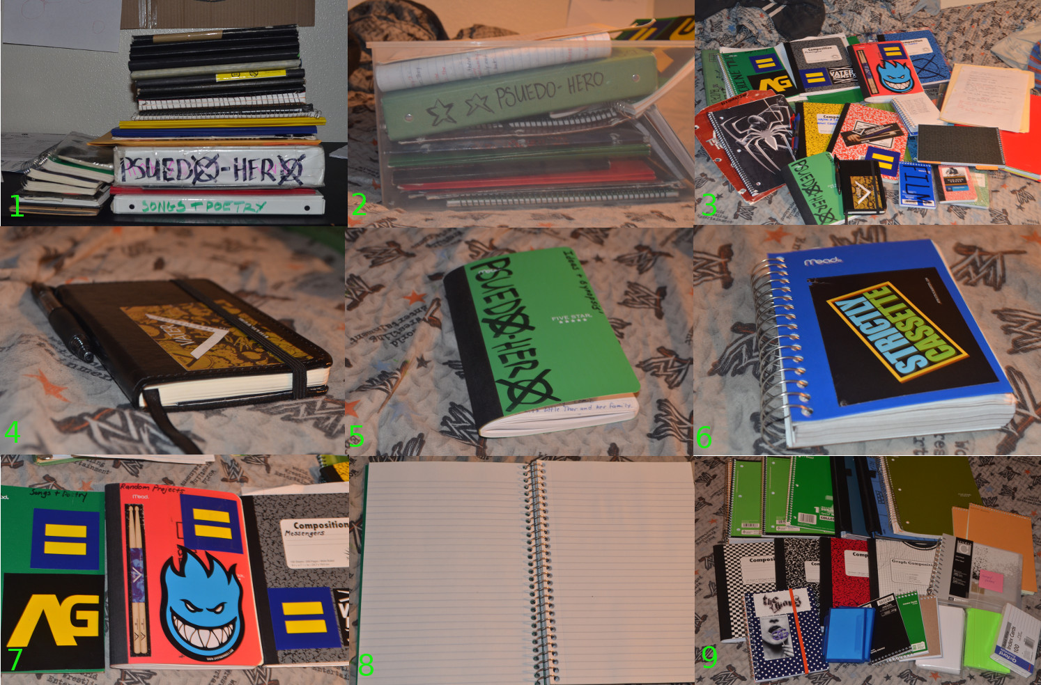A little about me, my name is Chelcee. I’m 21 and I’d very much consider myself a notebook addict. I’m a writer. I’ve been writing since I was about 12 years old, though I didn’t start doing it very seriously until I was about 17. I write all kinds of things, poems, songs, screenplays, stories, but I don’t plan on being someone who never lets anyone see my work. I don’t see myself as a personal writer (not that there’s anything wrong with that. I would just like for people to see my stuff, on the big screen hopefully) I never throw anything away. I still have things I had written when I was 12. It seems wasteful to me to take months to fill up a notebook just to throw it away, you know?So onto the pictures.1 – This is my collection of stuff I have currently filled. I have binders because I have A LOT of loose leaf paper. As you may be able to see, I really like composition books. I find them very versatile and because they are usually wide ruled, they fill up faster, which more or may not be a good or bad thing. I like filling them up, it makes me feel accomplished so I see the positive side of it generally. But I just discovered Five-Star makes college rule composition books and I’m in love with them.2 – This is my collection of things I’m currently working in. I’m always writing more than one thing at a time. I used to put everything into one notebook but that became very disorganized and I couldn’t stand that so now I try to separate everything into different notebooks if I can. And I actually just discover the idea of labeling my notebooks… Don’t ask me why that never occurred to me years ago because I have no idea.3 – This is all my stuff I’m currently working in laid out. Right now I’m not a huge fan of those flip up memo books. I didn’t know that until I bought a bunch of them though. I’m going to keep using them to see if they’ll grow on me. Its a colorful spread… I like color.4 – This is a Markings by C.R. Gibson notebook. I got it at Wal-Mart for about 5 dollars. For the longest time I didn’t touch it because Its the nicest notebook I’ve ever had and I wasn’t sure what to write in it. But I finally picked it up and I take it with me everywhere. Its pretty sturdy, I’d say. I’ll definitely be buy more, maybe not of the same brand.5 – Five-Star makes these mini composition books which are very cute but I don’t recommend them for everyday writing. They’re very stubborn and never want to lay down at all. I have to hold it flat to write in it. So I just use it for when I get ideas. It looks like a TV guide on the inside basically. I put the title of whatever the idea is if I have one and a brief summary under that. Since that’s all I use it for I don’t mind that it never wants to open.6 – Five -Star also makes these. They’re called Fat Lil’ Notebooks, I believe. I use these for random notes, schedules, to-do lists and things like that. It goes everywhere with me.7 – These are some of my latest notebooks and composition books. I really like stickers. I can’t draw so I like to decorate with stickers. Its important in my process of breaking in my new notebooks.8 – Right now I’m working on finding some kind of order with the things that I write in. Currently I use things like this, with no margins to write songs and poetry in because I generally don’t rewrite those so I don’t make notes on them. Things with margins are for stories and screenplays because I make a lot of notes on those. But then I realized a lot of the notebooks I want in the future don’t have margins… So I might have to rethink that or just create my own margins.9 – This is my stash of unused notebooks. I hope to get to them very soon.Its not a huge collection but I’m working on that. The only reason it isn’t bigger is because I’m too broke to buy more notebooks other than composition books. But I have plans. You should see my Amazon wishlist. Its dedicated to journals and its currently 115 items long and always growing. That also doesn’t count the list in my head for all the notebooks at Wal-Mart, Office Depot, and Staples, I want.