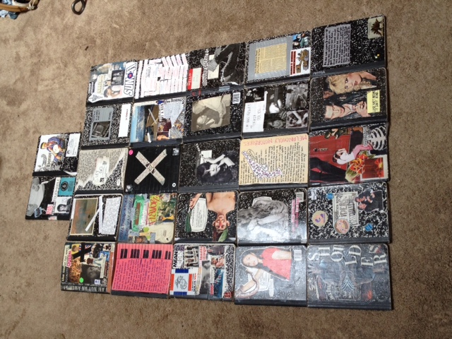 “This past week I had a day off and decided to group all of my journals from every corner of the house to see what kind of damage I have actually done over the past 22 years. The scale of the collection was a little shocking even to myself, and I just wanted to share it with somebody who I know would appreciate it and not just think i was crazy! As a bonus, I added a picture of some of my collage-covered composition books.”