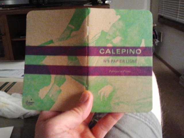 [As an aside, I think it is really interesting to note the different kinds of memories, nostalgia and aspirations that are encoded in the marketing schemes of various notebook brands. Moleskine wants to be all about creativity and travel, trying to associate themselves with globe-trotting writers and artists of the early 20th century. Field Notes romanticizes American agriculture in a simpler time when small-scale farmers used notebooks given to them as promotional items by companies that took the time to sell them seeds or machinery. Calepino similarly looks back at a warm memory of craftsmanship, and associates notebooks with the hand tools used by a worker in blue overalls. When is someone going to present a notebook that will explicitly appeal to our deep-seated inner desires to look like a black-clad, espresso-sipping avant-garde architect in fancy eyeglasses? Or our longing to replicate the notebooks used by a harried suburban soccer mom with long lists of groceries to buy and children’s activities to plan? Or our desire to associate ourselves with the eternal cool of the pimply teenaged Dungeons and Dragons player, scribbling spells and maps on crumpled pages stained with Mountain Dew? Surely these marketing schemes will come along when enough time has passed for them to have that retro appeal?]