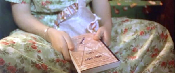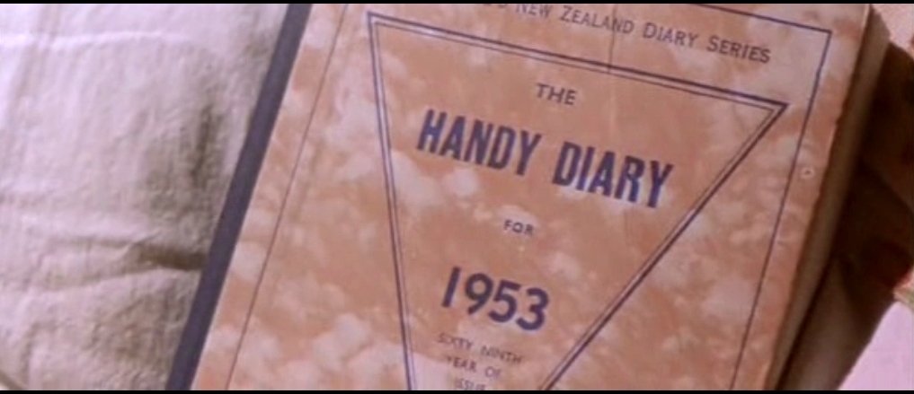 Heavenly Creatures has a famous real diary, Pauline Rieper’s. In the film her dad gives it to her for Xmas and says “I hope it’s all right. It’s from Whitcombe and Tombs.” Her smile says it’s just perfect. You see the cover, the first pages with advertising on them, and she writes in it several times. In the beach scene Juliet is also shown writing story notes in what may be a scribbler. Later on when she gets sick with TB, she coughs blood on her school notebook.