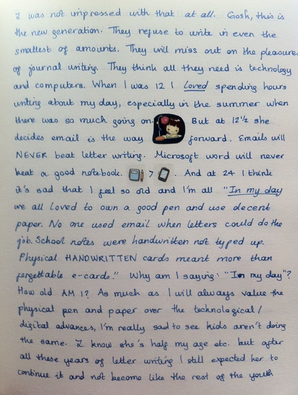 “I still haven’t found the 100% perfect notebook, which would have thick, off-white plain paper and be a hardback just under A5 size. The closest I have come to my ideal notebook is a Japanese lacquer journal from Paperblanks.I have kept journals from the age of 8 when my dad gave me his mini planner notebook. After that I was hooked and kept notebooks for the next 8 years of my life. I must have had around 30 in total and they were a sight to behold as I was very neat as a child but also artistic so they looked like works of art. I stopped writing when I turned 16 and went to college as I just felt too busy to keep up with them. I was also happier in life by then and I noticed that I tended to use journals to vent my anger and frustrations so as I got older and went through fewer hardships I was less compelled to use journals for the cathartic experience. When I turned 20 and finished university I decided I needed to get rid of my old journals as there was so much in them that I wanted to forget. Re-reading the bad experiences of my teenage years just made me feel bad about them, and I also had a lot of secrets written in them – not just mine but my friends’ and familys’. The worry of someone finding these old diaries really stressed me out to the point that I got a shredder and spent a good few weeks of my summer destroying every single page.At 24 I have started journalling again in a big way. I keep notebooks for a variety of purposes – I have a To-Do list book, a book journal, a dream diary, two daily Q+A diaries and a variety of books for random quotes I like, notebooks I write in during bus journeys to work and my usual journal.I don’t regret destroying some of my old journals – there were words in them I’m glad have disappeared. But I wish I’d kept at least a few of them. Yes being a teen had its horrible moments but I also had some really great times and I wish I had kept a few of my old musings to read back on. Thankfully I’ve kept all my old letters (I used to write to a lot of my friends and cousins through the time I was aged 10-16) and still have a few journal-like entries and my old stories stored in A4 folders.What I plan to do now is buy a safe to store all my curent used journals in. But even if someone read them now I wouldn’t be as stressed as I found myself as a teen. I was more social at that age and used to write down practically EVERYTHING I heard and the idea of whispered conversations and secrets coming back to haunt me really worried me. There’s less of that now. These days my notebooks are more personal reflections.”