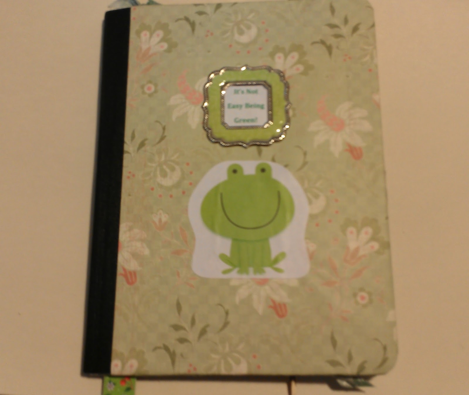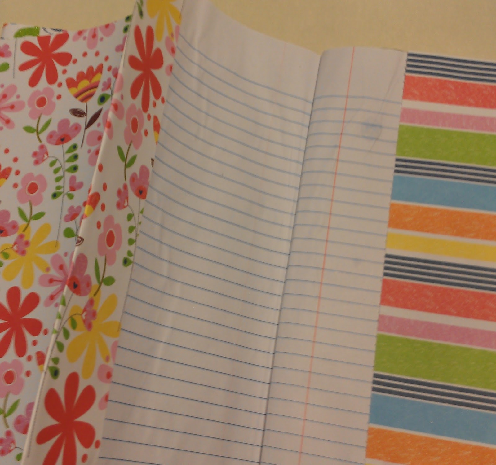 I have seen many examples of decorated composition books. I have, through a process of trial and error, come up with a method that works for me and that I like best. I have tried to come up with a step-by-step tutorial to show you how to do it too. Keep in mind that I did this alone. I did not have anyone to take the photos for me so, in some cases, they are not quite as clear as I’d like. Still, I think you can get the idea. Have fun!