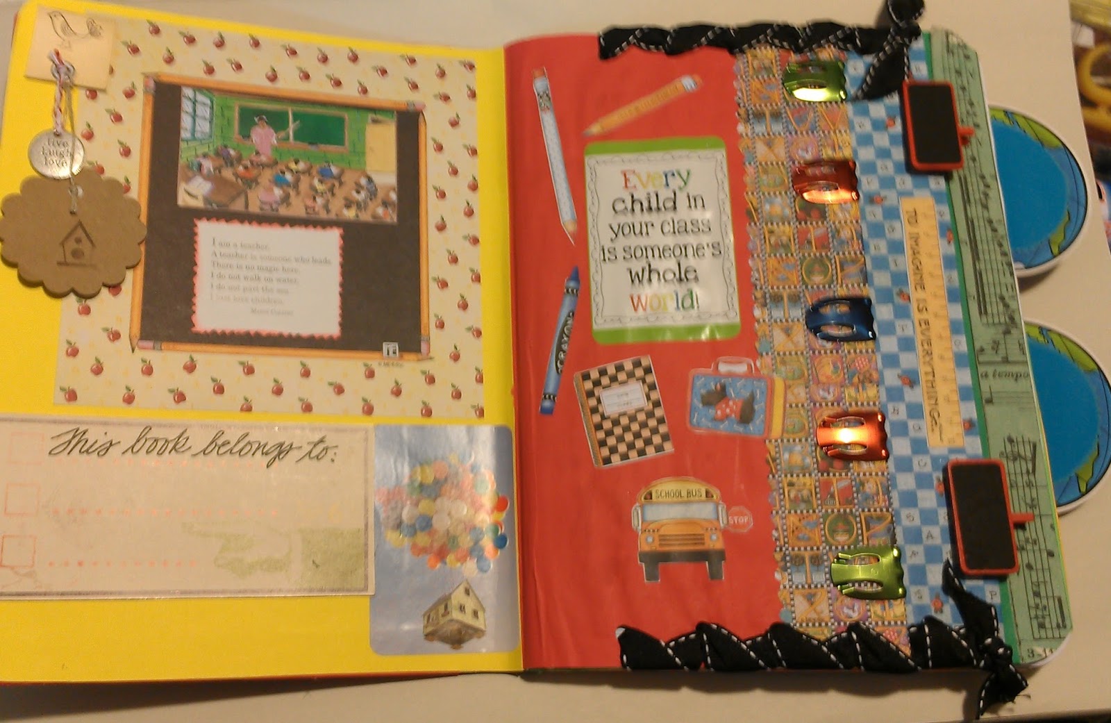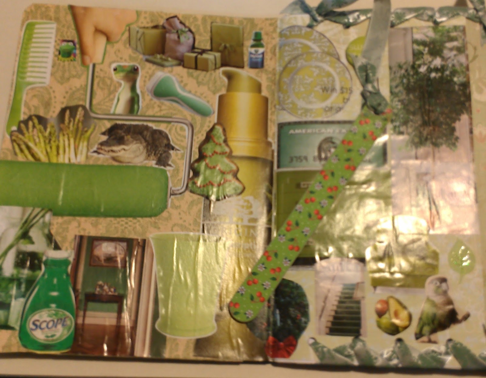 This is a book I did on the color green. On the inside, I put all kinds of green things. I attached a ribbon at the top and used a green emery board as a book mark!