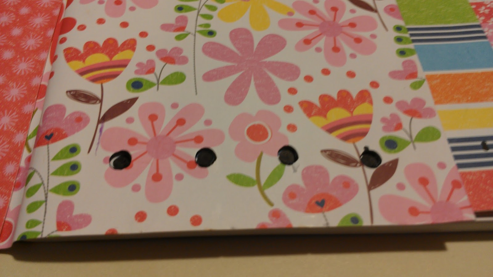 Step 19: Punch holes in flap one where you made the marks. Only do one flap at a time, or your punch will break. After you punch your holes, use your pen/pencil to color in the holes so that they show on flap two. The holes will be in all three flaps and they MUST line up for the pockets to work.