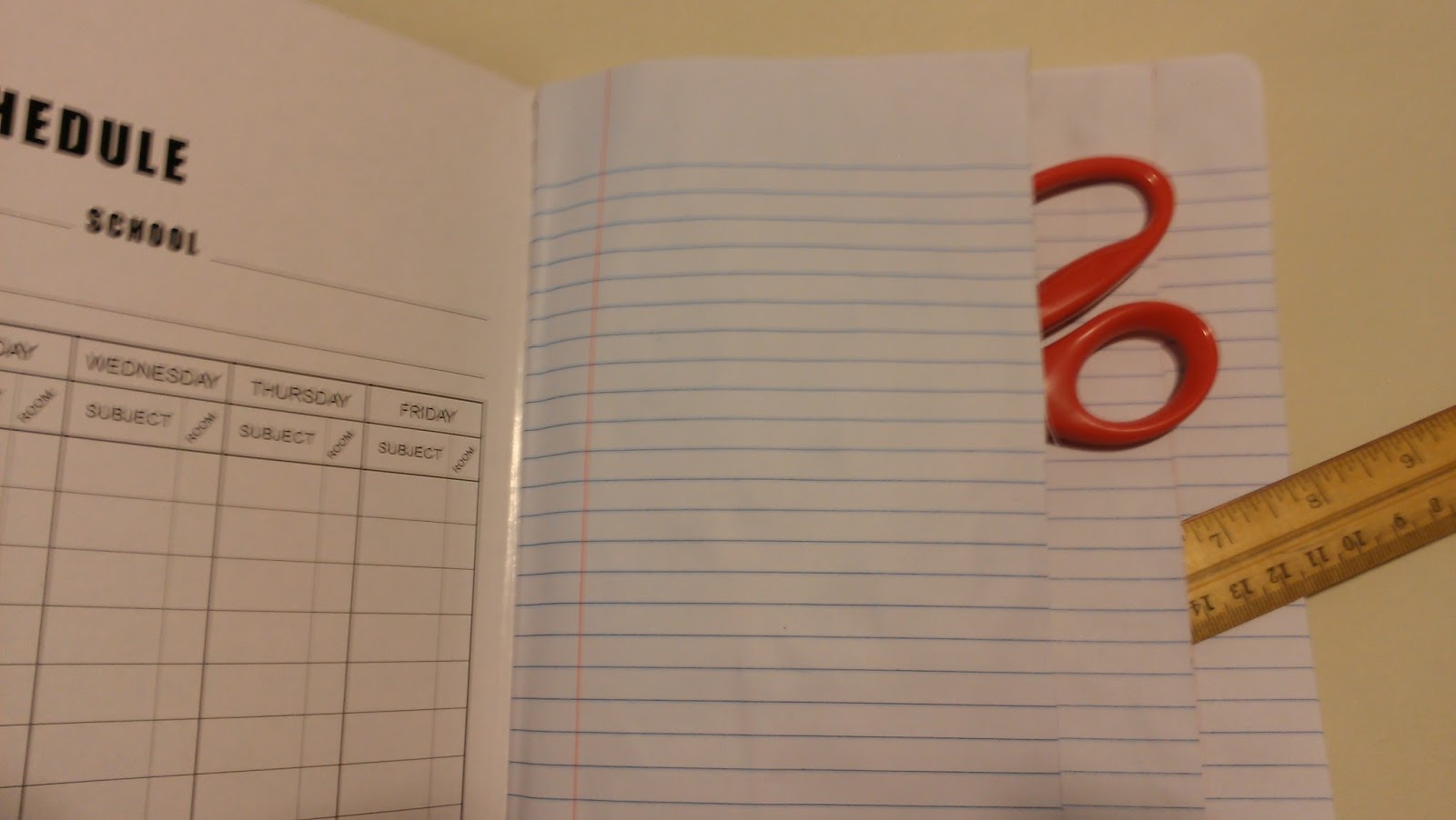 Step 3: I will refer to these three sets of pages as flaps: flap one, flap two and flap three. You will now need to get your ruler and pencil. On flap one, mark a line from the edge of the page that is as wide as your ruler. Then put your ruler on the line you just marked and mark another line as wide as your ruler. The second line is the line you are going to cut on.