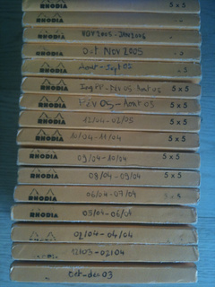 This week’s addict has a habit of filling Moleskine and Rhodia notebooks. Look at these nice stacks!