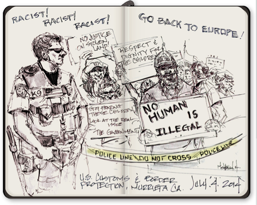 Mike Sheehan shares his excellent sketches documenting the Murrieta immigration protests: