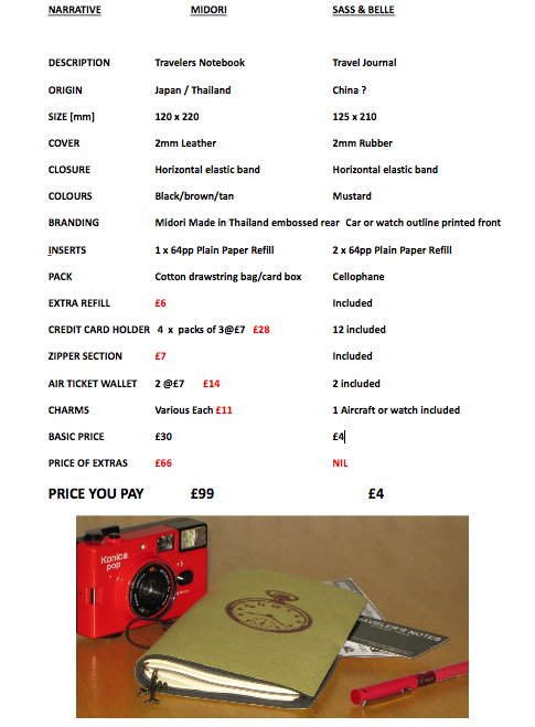 Colin (who has some great posts about notebooks on his blog) sent this great comparison between the Midori Traveler’s Notebook and a similar style from Sass & Belle: