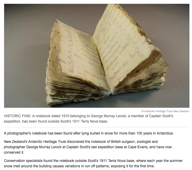 Bevan sent this link about a notebook found after being buried in ice for over 100 years!