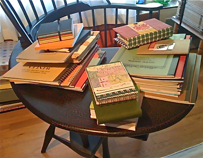 “So when it comes to notebooks, it turns out that I have a ridiculous number and variety in my greedy possession: linen-over-boards-in-pleasing-colors; high-end paper with/without lines/grids; handmade by dear friends; lovingly and cleverly chosen by traveling family members; discovered in quaint corners of art, paper, writing, museum, &/or book shops; etc. I stockpile a stockpile. Turns out this is maybe an illness….