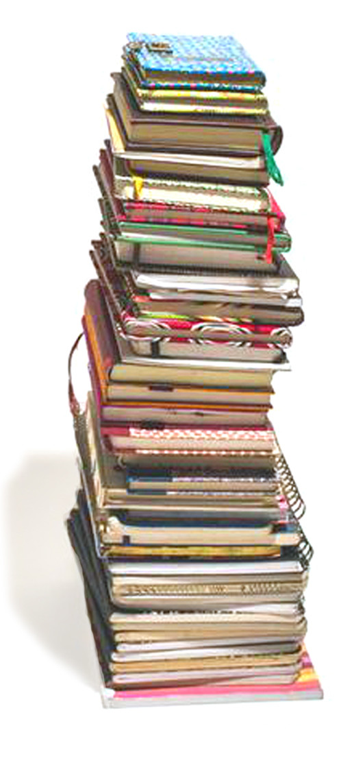 Laura Rubin is a notebook addict who has also become a notebook maker/seller. Below is a photo of Laura’s journals starting from age 8.