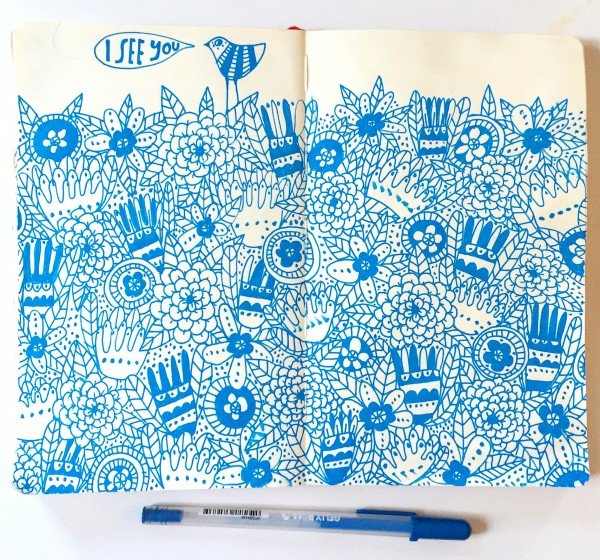 Some excellent sketchbook spreads from Lisa Congdon– I love the density of the patterns: