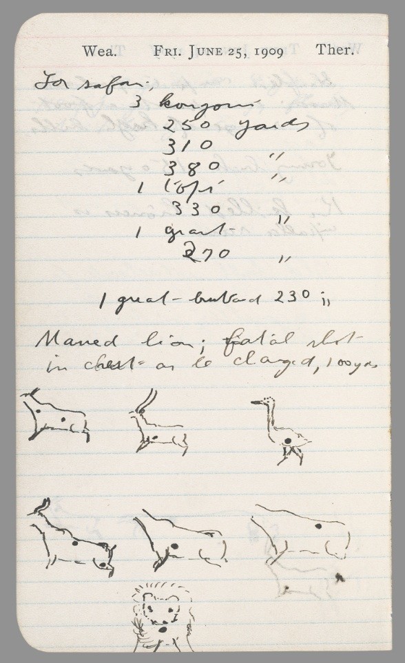 Theodore Roosevelt kept field notebooks on his travels, including the ones pictured below from a safari trip. He seems to have had a talent for sketching the animals he saw… and shot! :(