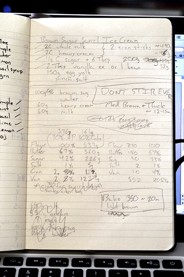 Chefs can have some pretty interesting notebooks. This one belongs to Nick Wuest, who is a Pastry Arts student at the International Culinary Center. The first few lines of this recipe already had me salivating…