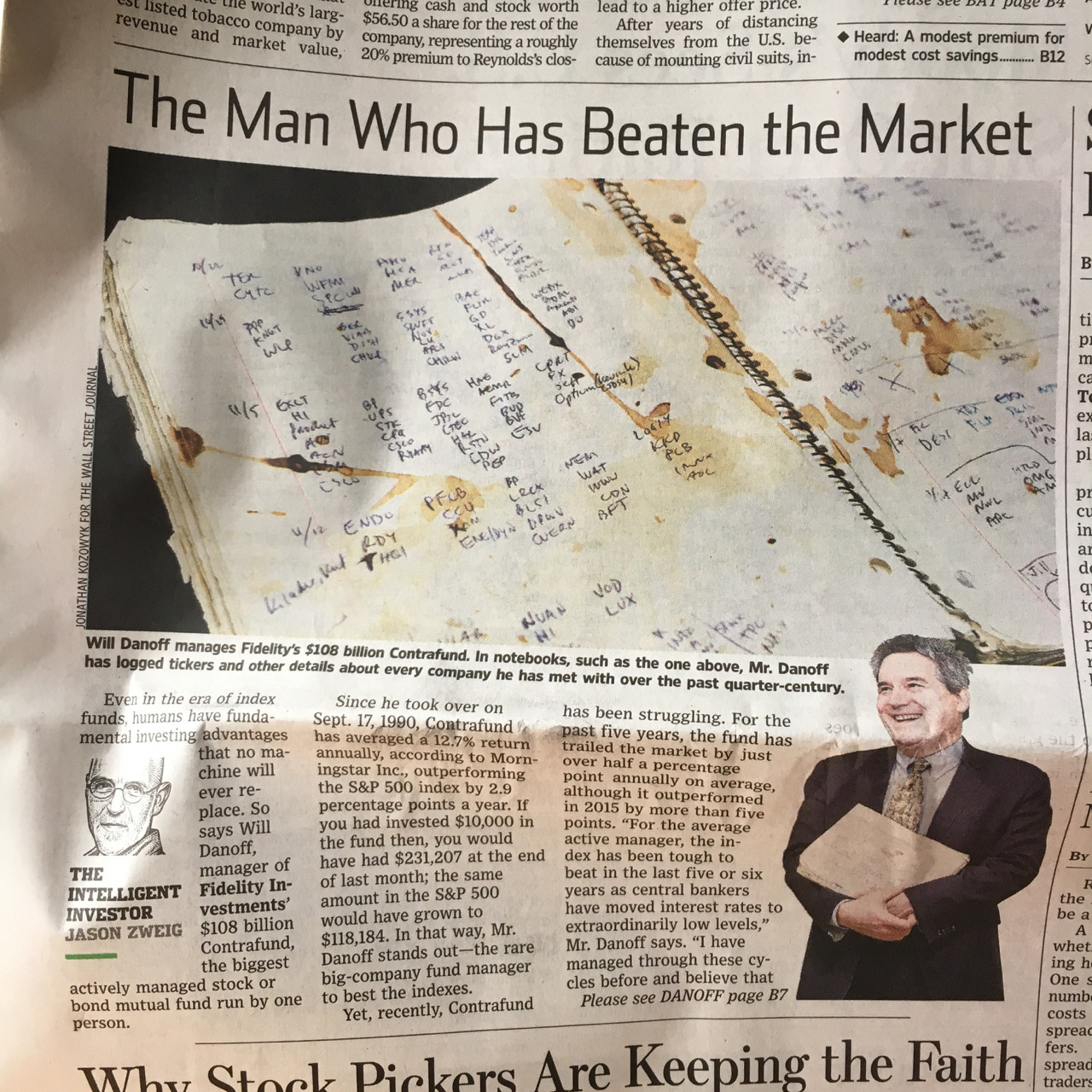 Other People's Notebooks, record-keepingA Fund Manager’s Notebook November 30, 2016 Nifty Notebook Leave a comment I spotted this in the Wall Street Journal a few weeks ago. That is a very well-used notebook. Looks like he must drink a lot of coffee, too!