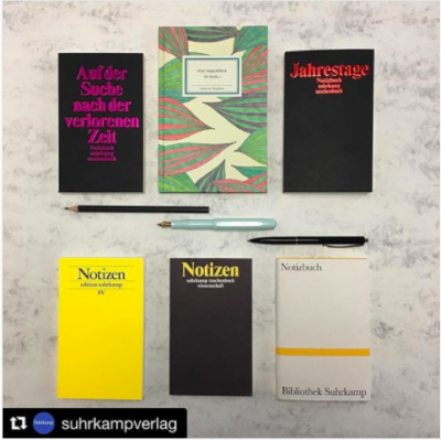 A German book publisher sells blank books that mimic the format and design of their book series. I love the idea that you could camouflage your journals in a bookshelf among other authors’ books!
