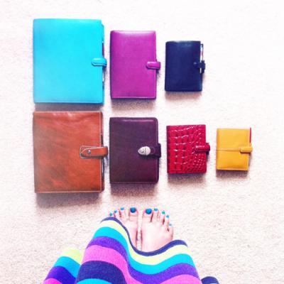 Here’s an addict I found via Pinterest: Susannah Conway, an author, photographer and teacher. I love how her Filofax collection is so varied colorful, and her Moleskines are so monochrome and orderly!