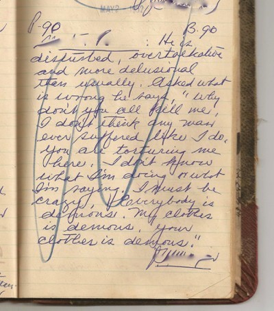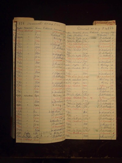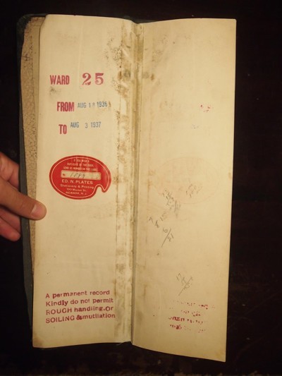 I go through phases of being extremely disorganized as a blogger. People email me cool tips and sometimes I don’t get to them for a while, and then sometimes I am not sure whether I’ve used them or not. And in the case of this post, someone emailed me all these great photos, which I saved on my computer desktop. But now that I’ve found them, I can’t find the email they came in! If memory serves me, the person who sent them salvaged them from an old asylum that was being torn down, and the notebooks are ledgers recording information about the patients. They are quite fascinating, and rather sad.