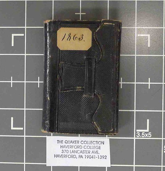 Below is a notebook or diary of a type that seems to have been very common in the mid-late 1800s. This one belonged to Julia Wilbur, a teacher, abolitionist, and suffragette from Rochester, NY whose diaries have been archived at Haverford College.