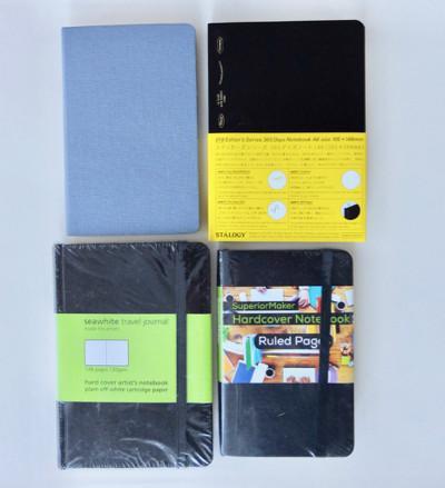 A4, A5 and A6 are probably the most common sizes. In my experience, A4 is a reliably consistent size, the way “letter size” paper in the US is always 8.5 x 11″. I don’t have much experience with A5 variations, but A6 is a size that I’ve bought a lot. All the notebooks in the photo below were described as being A6 size: