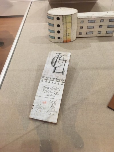I visited the National Gallery in Washington DC not long ago, where there were many interesting things to see, including a room full of Saul Steinberg’s art. I was familiar with some of his work, such as the famous aerial view of the world from New York City that appeared on the cover of the New Yorker in the 1970s. But I had no idea of the full scope of his art, which goes way beyond the illustrations and cartoons for the New Yorker. I just loved these wooden objects he made, replicating common desktop objects and art supplies, including some notebooks: