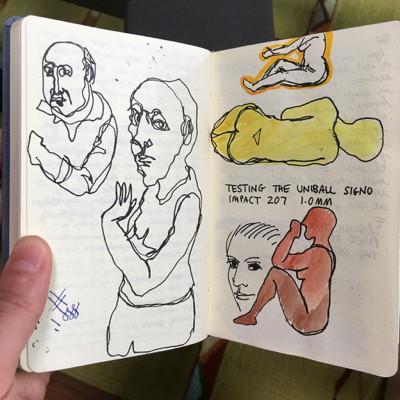 For more serious drawing, I just finished a Moleskine sketchbook and started using a Leda Art Supply pocket sketchbook for the first time. It’s a nice chunky size, and the paper is very good, even though it is thinner than Moleskine paper. The notebook has double the number of pages of a Moleskine sketchbook– this is a good thing in a way, but it also makes me feel like it will take too long to finish it! (Sometimes I just get antsy to unwrap a new notebook…)